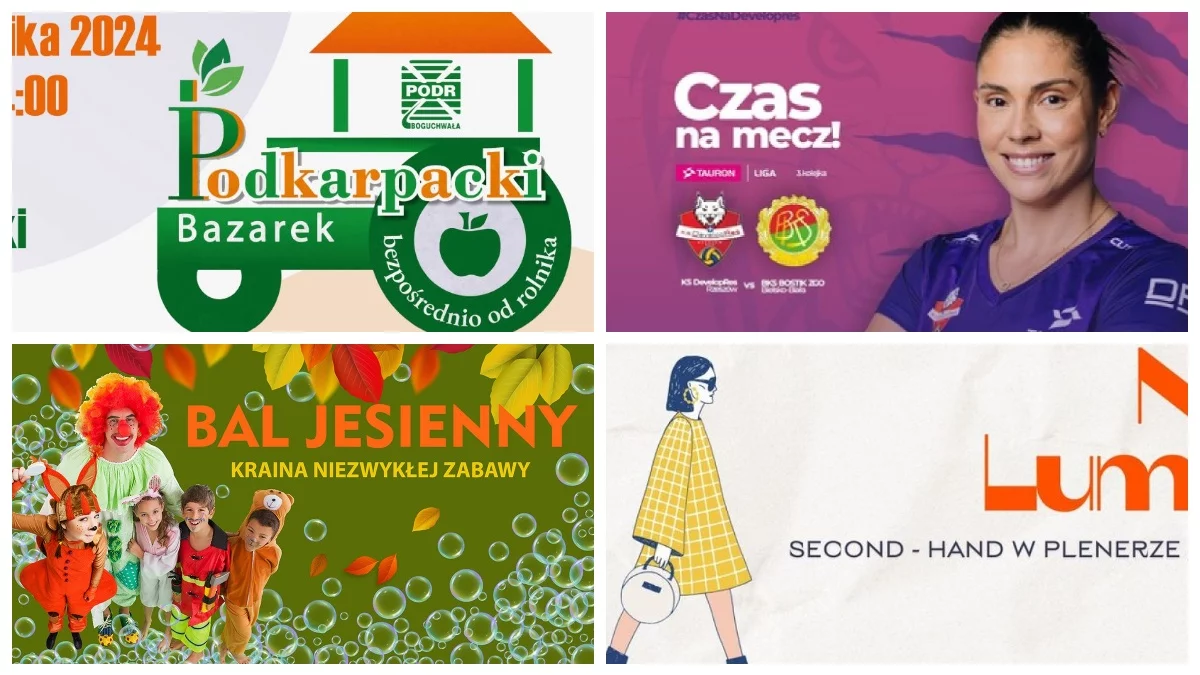 W niedzielę polecamy second-hand w plenerze, czyli "Niezły Lumpeks". Będzie to wydarzenie, podczas którego sprzedawane będą ubrania z drugiej ręki oraz perełki vintage. Kilkunastu wystawców z Rzeszowa w Rzeszowskich Piwnicach o godz. 12:00 - 17:00. Na Stadionie Miejskim przy Hetmańskiej zagra Resovia Rzeszów. Rywalem drugoligowca będzie Podbeskidzie Bielsko-Biała. Czeka nas także "Bal Jesienny' - o godz. 17:00 przy ul. Księdza Jana Stączka 40. Dla dzieci i rodziców. Wstęp wolny.