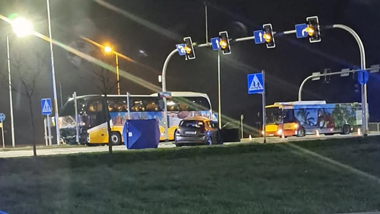 Kierująca Kią wyjeżdżając z ulicy podporządkowanej nie ustąpiła pierwszeństwa kierującemu autokarem. W wyniku tego manewru doszło do zderzenia obu pojazdów. 62-letnia kobieta pomimo prób reanimacji poniosła śmierć na miejscu, a jej 61-letni pasażer został ranny