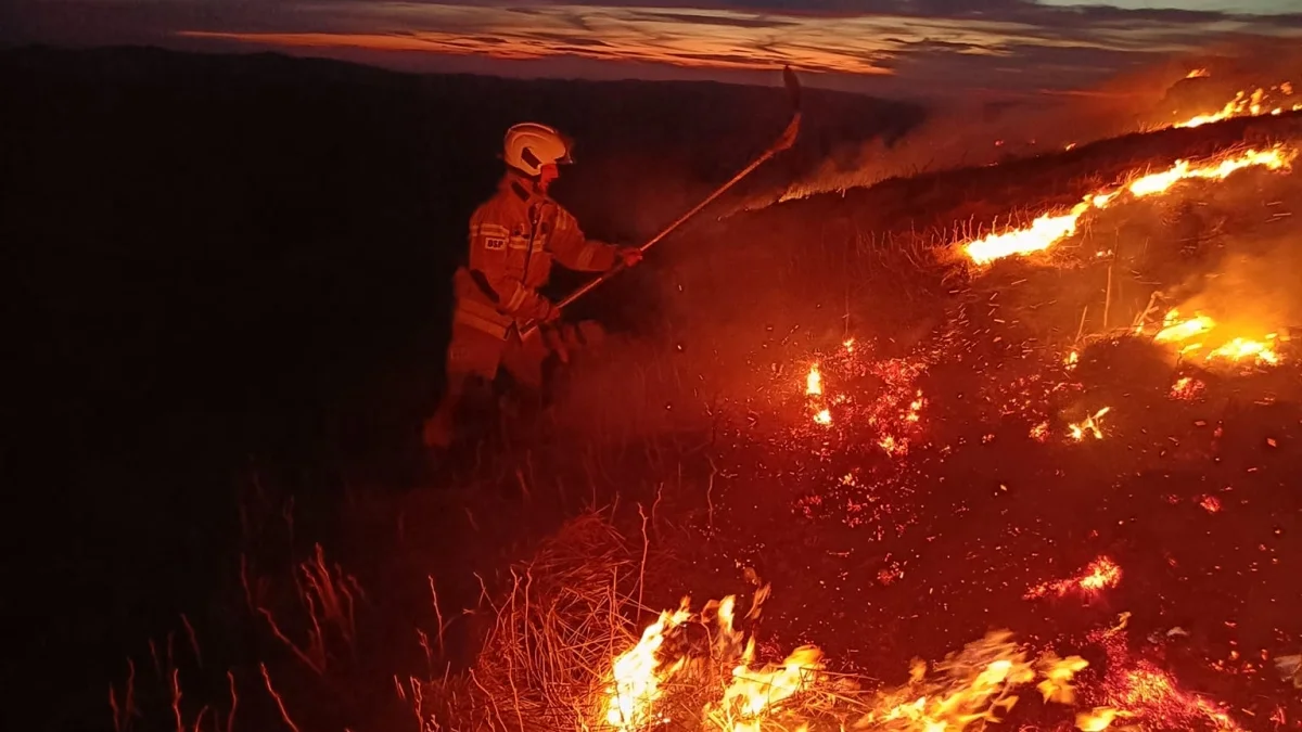 Około godziny 20:00, służby ratunkowe z terenu powiatu bieszczadzkiego zostały zaalarmowane o pożarze na Połoninie Caryńskiej w Bieszczadach. Na miejsce zdarzenia zdołało dotrzeć dziewięć jednostek straży pożarnej. Jak ustaliliśmy, pożar objął nieco ponad 5 hektarów traw i jagodziny. Na tę chwilę sytuacja została po części opanowana, jednak gaszenie utrudnia wiatr. Do akcji włączyli się także ratownicy Bieszczadzkiej Grupy GOPR, którzy pomagali przy transportowaniu strażaków w rejon kopuły szczytowej. Ponadto do działań zaangażowano 14 quadów i drona, który monitorował teren.