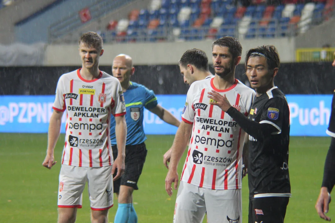 84' - Świetnie rozegrany rzut wolny. Marek Mróz delikatnie podał do Wasiluka, który popisał się piekielnie mocnym uderzeniem z dystansu. Piłka po interwencji bramkarza trafiła w słupek i po odbiciu znalazła się pod nogami Macieja Górskiego. Napastnik Resovii przyjął piłkę i pewnie skierował futbolówkę do siatki.