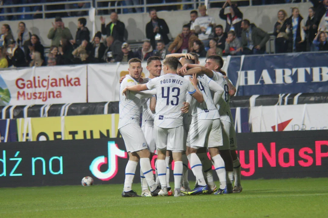 5' - Christian Aleman doskonale podał na wolne pole do Karola Czubaka, który wyszedł w tempo, unikając spalonego. 23-latek próbował minąć bramkarza Stali Rzeszów, jednak został sfaulowany przez Przemysława Pęksę. W rezultacie sędzia wskazał na wapno. Jedenastkę na bramkę zamienił Hubert Adamczyk.