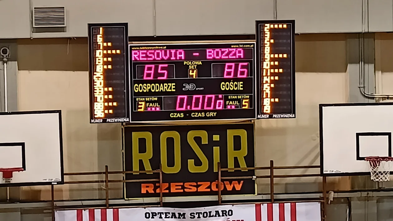 Ostatni akt to koncertowa gra Michała Szwedo. Goście wyszli na 10-cio punktową przewagę. Aż wreszcie kapitalnie zaczęła grać Resovia, którą do boju poderwała kolejna efektowna trójka Wojciecha Szpyrki. Rozgrywający "pasiaków" trafił w tym spotkaniu 3/4 rzuty trzypunktowe. Po udanym wjeździe Adriana Warszawskiego przewaga gości zmalała do dwóch punktów. Kolejny raz błysnął Warszawski, który celną trójką wyprowadził Resovię na prowadzenie 72-69. Kapitalny fragment kolejny raz od Michała Szwedo. Autor 35 punktów w dzisiejszym spotkaniu udowodnił swój potencjał, rzucając celnie za 3. 81-81 i nerwowa końcówka w hali ROSiR. Do końca 40 sekund, akcja gości przyniosła kolejny celny rzut trzypunktowy. Indywidualna akcja Mamcarczyka i faul przy celnym rzucie. Resovia wychodzi na prowadzenie 85-84 na trzy sekundy przed końcem spotkania. Niesamowicie presje wytrzymał Artur Włodarczyk, który po wzięciu czasu przez trenera otrzymał piłkę i mimo asysty obrońców wykonał celny rzut pogrążający w smutku koszykarzy Rzeszowa. Ostatecznie OPTeam przegrywa we własnej hali 85-86. Resovii należą się brawa za świetną postawę do końca i trafienie aż 35 punktów w ostatniej kwarcie.