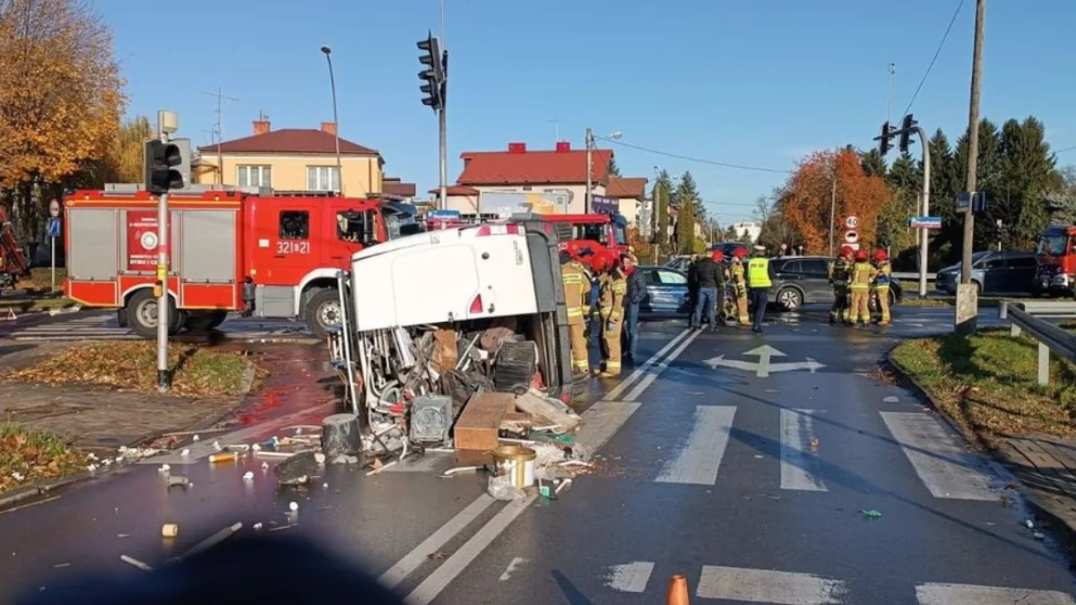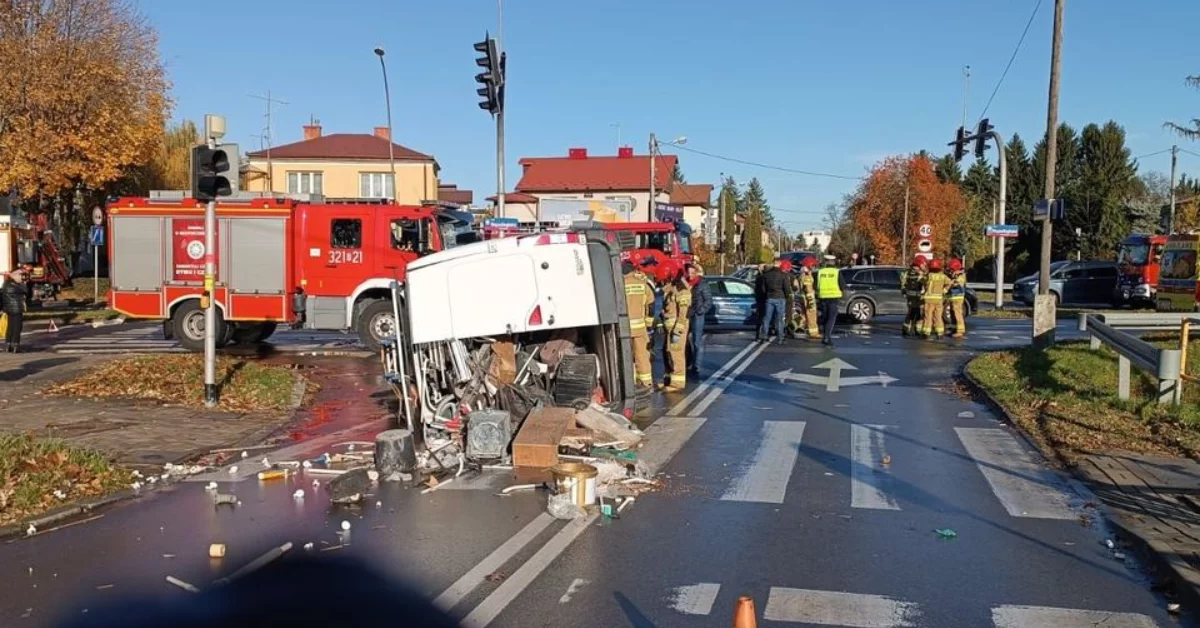 28-letni kierowca Audi z Rzeszowa, jadąc Alei Niepodległości w stronę Alei Armii Krajowej, wjechał na skrzyżowanie z ulicą Mieszka I, mimo że świeciło się czerwone światło. W wyniku tego doprowadził do zderzenia z dostawczym Renault, który po uderzeniu przewrócił się na bok. Na szczęście nikt nie został ranny, a obaj kierowcy byli trzeźwi.