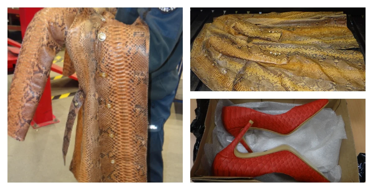 Mężczyzna odpowie nie tylko za przemyt, ale również za złamanie przepisów ustawy o ochronie przyrody. Przez granice próbował przewieźć płaszcz i 2 pary damskiego obuwia. Towar został znaleziony w busie, który wjeżdżał do Polski z Ukrainy. Funkcjonariusze zidentyfikowali odzież. Identyfikacja wykazała, że zostały wykonane ze skóry pytona, węża objętego ochroną na podstawie Konwencji Waszyngtońskiej CITES.