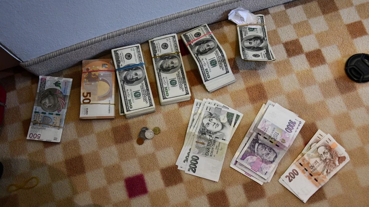 Zabezpieczyli także znalezione pieniądze – 50 sztuk banknotów o nominale 500 złotych, 100 sztuk banknotów o nominale 50 euro, 293 sztuki banknotów o nominale 100 dolarów oraz 20 sztuk przepasanych paskiem zabezpieczającym, oraz łącznie 16 banknotów o różnych nominałach koron czeskich i gotówka w kwocie ponad 300 złotych