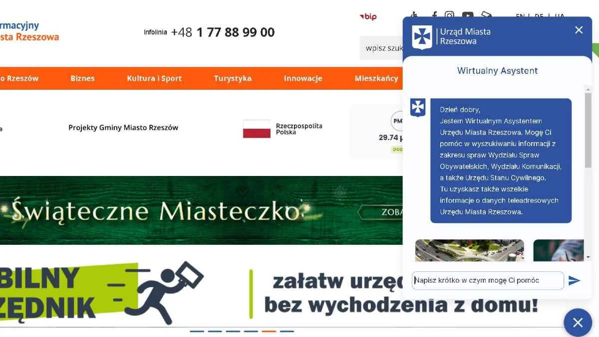 Prywatne firmy coraz częściej wykorzystują sztuczną inteligencje do kontaktów z klientami. To rozwiązanie nie zawsze przynosi zamierzony efekt. Niekiedy to co w założeniu ma skrócić czas udzielenia informacji znacznie go wydłuża. Mimo wad takiego rozwiązania wprowadzenia e-urzędnika decydują się także urzędy. Na zlecenie Urzędu Miasta Rzeszowa firma Opteam stworzyła właśnie dla nich takiego wirtualnego asystenta. Pracownicy instytucji zaznaczają, że jest to pilotaż.