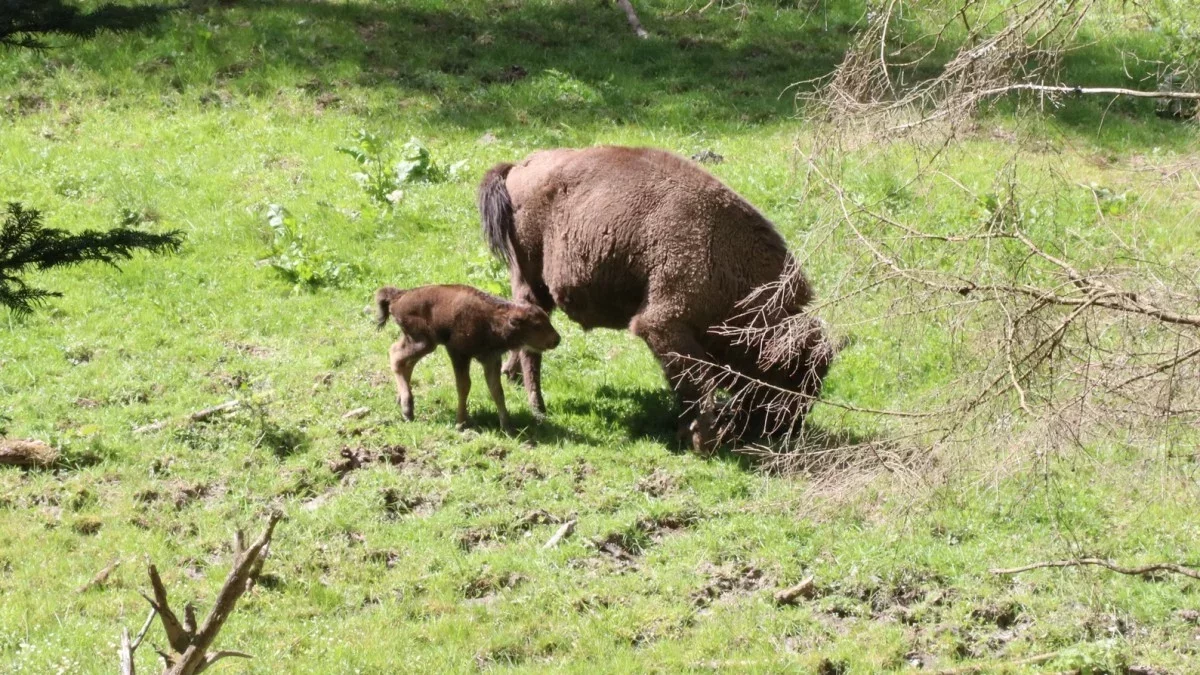 Matka przez kilka miesięcy karmi młode mlekiem, które dostarcza mu niezbędnych składników odżywczych, wzmacnia układ odpornościowy i zapewnia prawidłowy rozwój. W okresie laktacji młody żubr ssie matkę kilkanaście razy dziennie, a widok takiego karmienia, uchwycony na nagraniu, jest wyjątkowy, bo zwykle dzieje się to w zaciszu leśnych ostępów, z dala od ludzkiego wzroku.