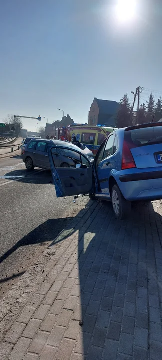Wypadek dwóch samochodów osobowych. W wyniku zdarzenia dwie osoby zostały poszkodowane i przetransportowane przez Zespoły Ratownictwa Medycznego do szpitala