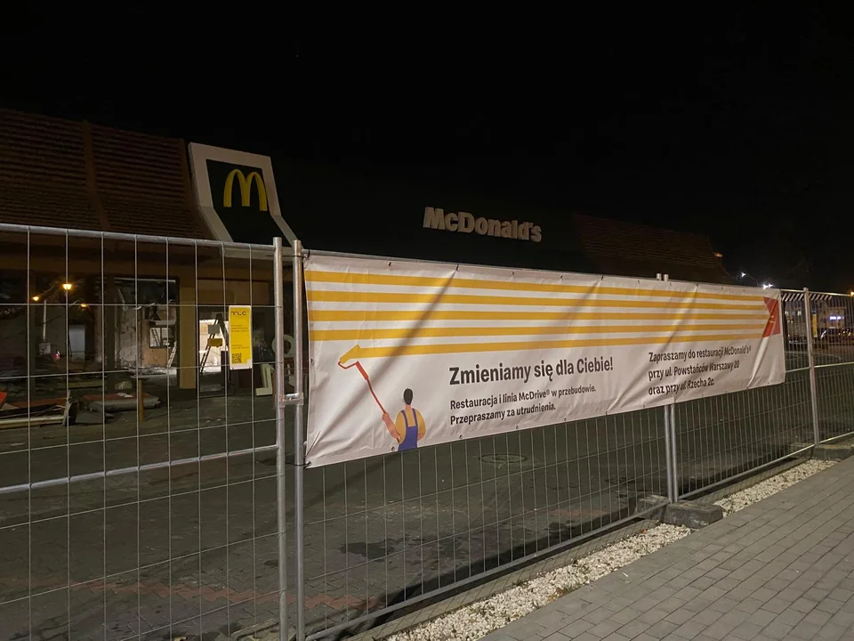 Co jest powodem zamknięcia? Okazuje się, że to tylko chwilowa przerwa. Na barierkach wisi baner informujący, że restauracja oraz linia McDrive są obecnie w przebudowie.