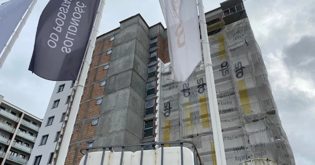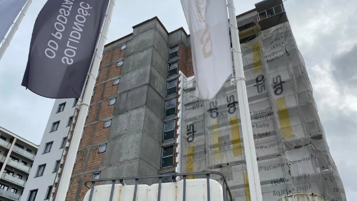 Na zachodnich obrzeżach Rzeszowa budowa nowoczesnych wieżowców postępuje w szybkim tempie. Konstrukcje budynków osiągnęły już znaczną wysokość, a na elewacjach trwają prace wykończeniowe i montaż stolarki okiennej. Na placu budowy widać żurawie, rusztowania oraz ekipy pracujące przy elewacjach i instalacjach technicznych. Cała inwestycja nabiera kształtu, a po zakończeniu ma wprowadzić na osiedle Projektant nowoczesną architekturę i nowe przestrzenie mieszkalne.