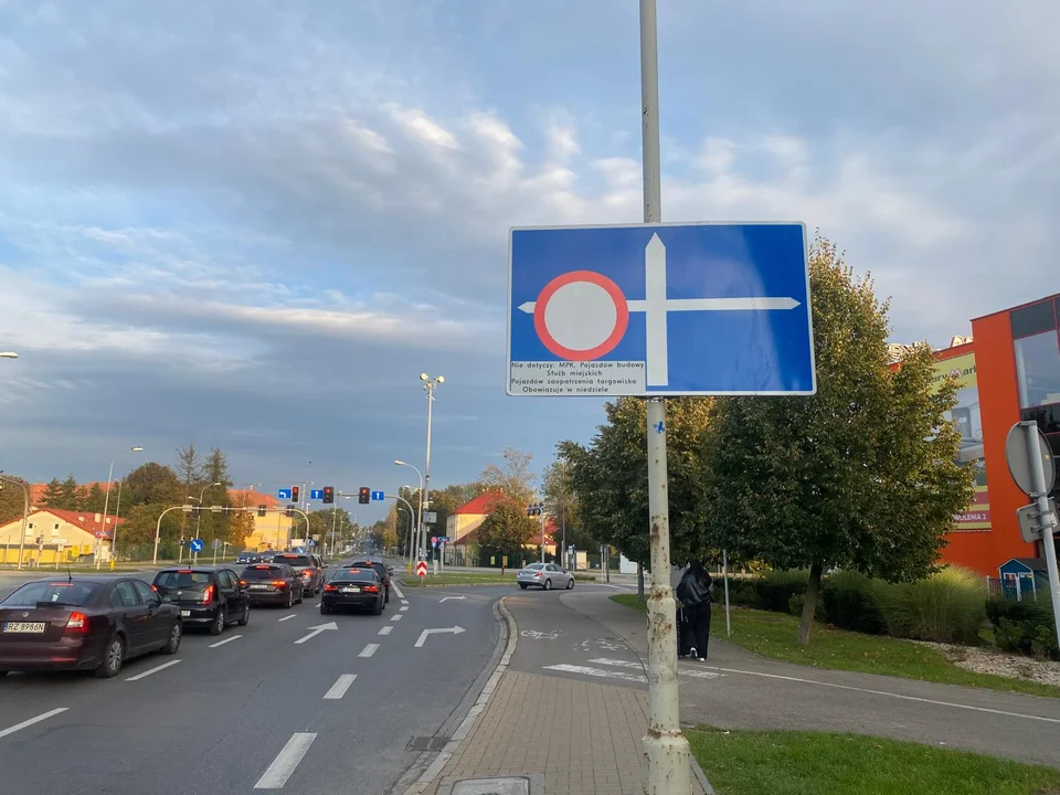 "Znak zakaz ruchu widoczny dopiero po skręcie"