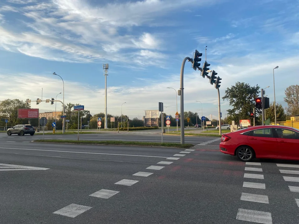 Znak Zakaz ruchu widoczny dopiero po skręcie, w prawo lub w lewo celowo tak ustawiony. Brak oznaczeń na pasie do skrętu w prawo lub lewo.Po zauważeniu znaku nie ma możliwości zawrócenia. Zaraz za znakiem stoi strażnik miejski i na pytanie jak zawrócić informuje wszystkich że proszę podjechać dalej tam gdzie kolega stoi, a kolega za "użyczenie pasa do zawrócenia" daje nagrodę w postaci 200zl i 8pkt karnych. Przez ok godzinę obserwacji taką nagrodę otrzymało dziś ok 20 kierujących