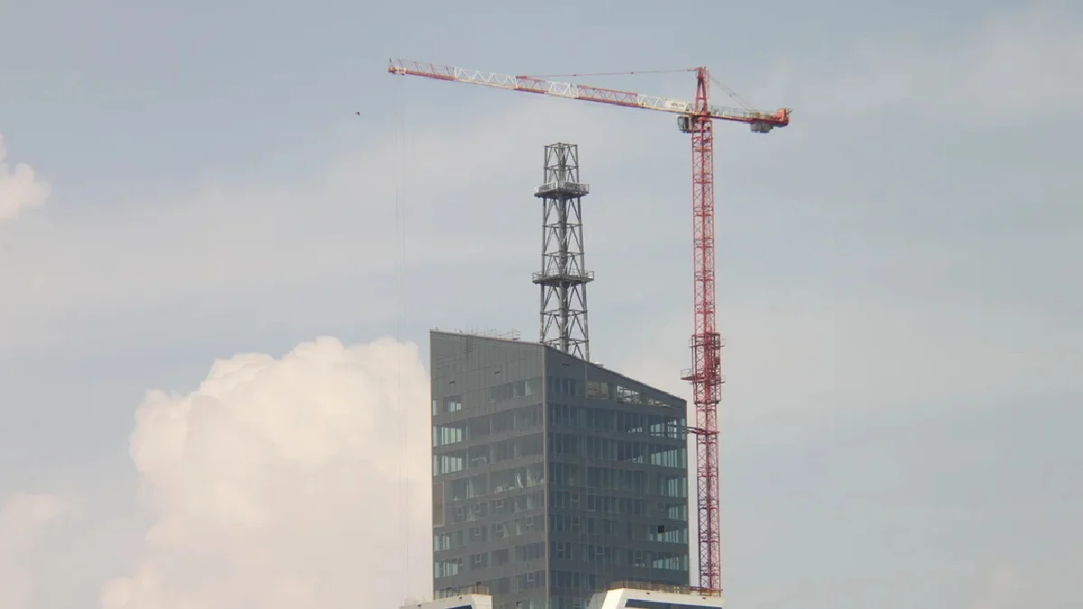 Iglicę montuje najwyższy żuraw w Europie. Jego wysokość użyteczna podnoszenia, czyli pod hak, wynosi 187 m. Całkowita wysokość żurawia to 195 metrów. W Rzeszowie na Olszynkach Park pracuje żuraw wieżowy Wolff.