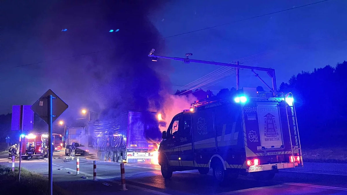 Płonąca naczepa w pobliżu remizy OSP Lutcza – błyskawiczna reakcja strażaków zapobiegła tragedii