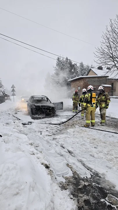Spaleniu uległ samochód osobowy marki Audi, który został całkowicie zniszczony przez ogień. Na szczęście nikt nie odniósł obrażeń. Na miejscu interweniowała również policja. Jak przekazano, pojazd był starszego typu, a straty materialne nie zostały ocenione jako wysoki