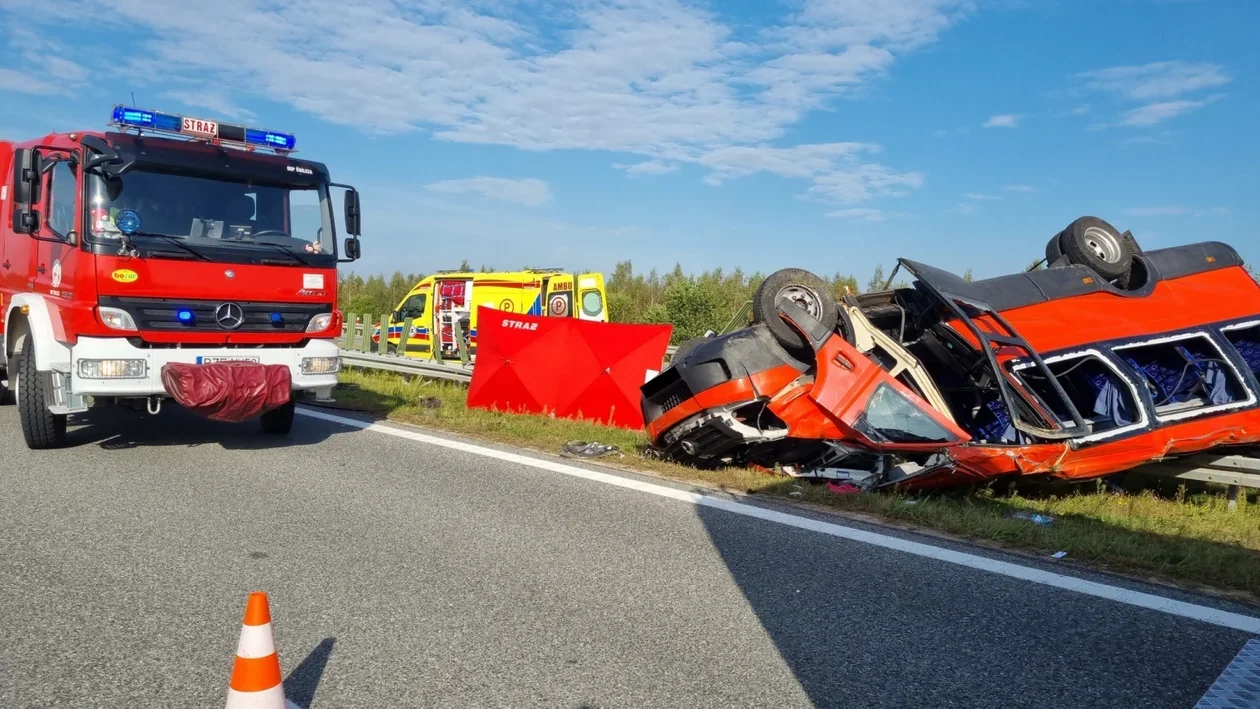 W tym samym czasie pojazdem marki BMW, prowadzonym przez Dariusza D., poruszał się lewym pasem ruchu. BMW uderzyło w prawą przednią stronę autobusu, co spowodowało zatrzymanie się BMW na pasie zieleni pomiędzy przeciwnymi kierunkami ruchu, a autobus przewrócił się na bariery oddzielające jezdnie i na nich się zatrzymał. W wyniku tego zdarzenia uszkodzeniu uległo około 100 metrów barier. Obydwaj kierowcy byli trzeźwi, pobrano od nich próbki krwi w celu przeprowadzenia dalszych badań.