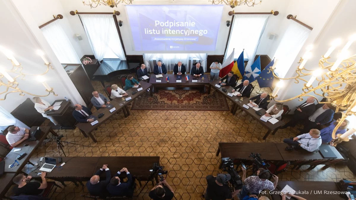 5 czerwca br. w rzeszowskim Ratuszu został podpisany list intencyjny. Dotyczy rozwoju technologii autonomicznych bezzałogowych statków powietrznych (BSP) oraz technologii wspierających. W spotkaniu udział wzięli Prezydent Miasta Rzeszowa, Konrad Fijołek, Przewodniczący Rady ds. Współpracy z Ukrainą, poseł na Sejm RP, Paweł Kowal oraz przedstawiciele instytucji naukowych i firm zainteresowanych współpracą w tym strategicznym obszarze, a także Komisarz UE ds. obrony i przestrzeni kosmicznej, Andrius Kubilius.