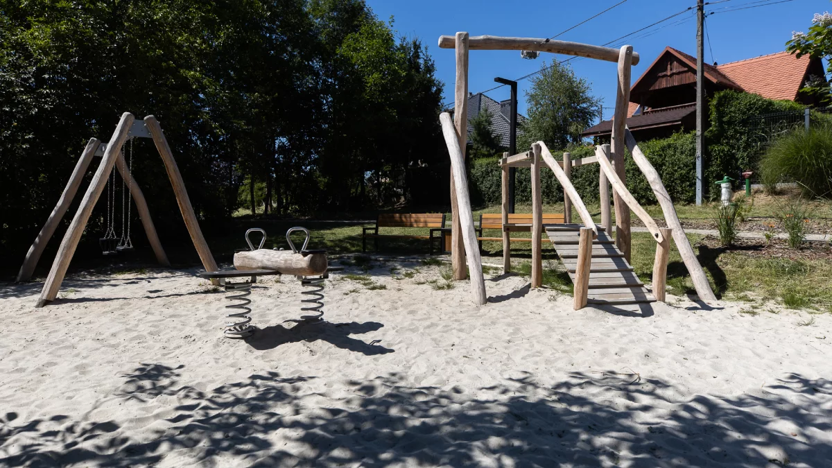 Z myślą o najmłodszych powstał atrakcyjny plac zabaw, wyposażony m.in. w tyrolkę, huśtawki, domek oraz dużą wieżę-linarium. Nie zabrakło również siłowni plenerowej, gdzie dzieci mogą ćwiczyć na drabinkach, pokonywać tor przeszkód, przechodzić po mostach linowych czy podciągać się na drążkach.