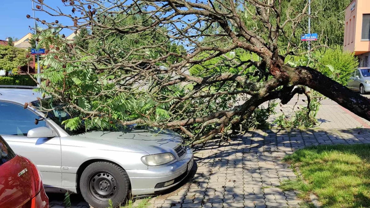 W Rzeszowie zostały zalane ulice obok centrum handlowego B1. Na osiedlu Projektant złamane drzewo wylądowało na zaparkowanym w pobliżu samochodzie.