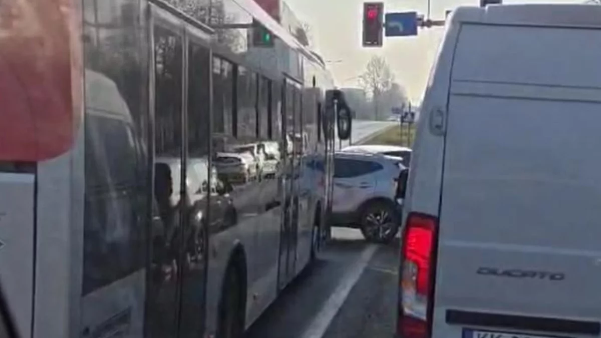 Poranny szczyt na Krakowskiej skomplikował się jeszcze bardziej po godzinie 8:00. Na kluczowym skrzyżowaniu, podczas próby skrętu z ulicy Krakowskiej w aleję Wyzwolenia, doszło do stłuczki z udziałem autobusu komunikacji miejskiej i osobówki.