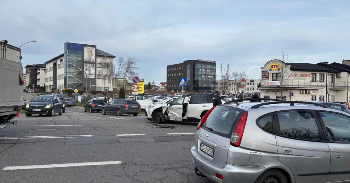 Do zdarzenia doszło na ulicy Niemierskiego, tuż przy skrzyżowaniu z ulicą Romańczuka. Na jezdni w kierunku skrzyżowania z Aleją Armii Krajowej stoi biały SUV, którego przód jest wyraźnie rozbity. Kilka metrów dalej zatrzymał się drugi pojazd, który ma uszkodzony prawy bok. Na ulicy Romańczuka, tuż obok, znajduje się trzeci pojazd – czarny Peugeot z widocznymi zadrapaniami na lewym boku. W wyniku wypadku w okolicy panują spore korki, a kierowcy muszą liczyć się z utrudnieniami w ruchu.